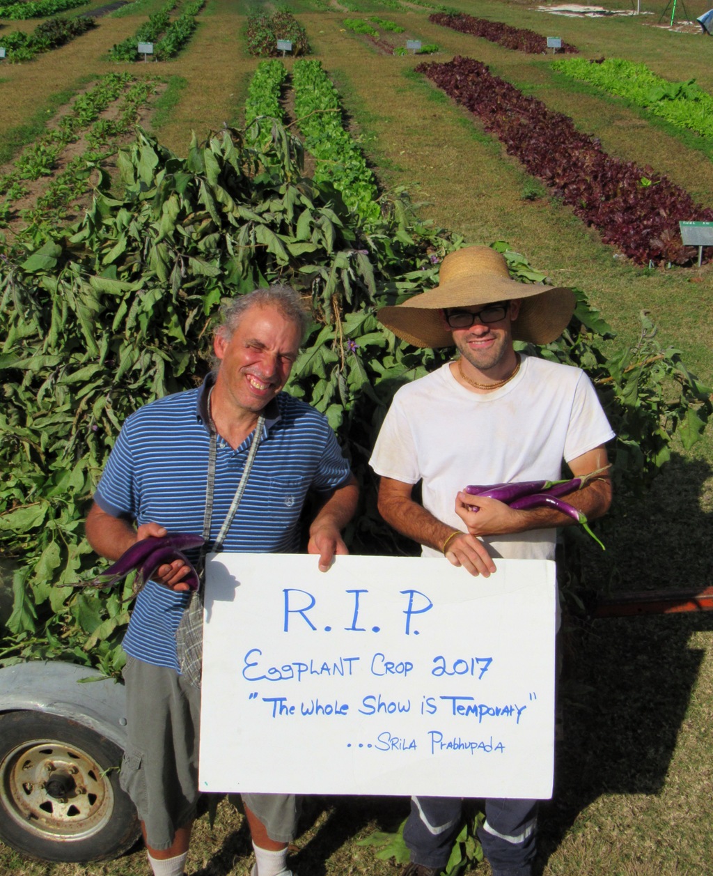 A closing prediction is in order: As Kali-yuga tightens its stranglehold—no rain means no grain—the tawny issue of food security will redefine our heady, brahminical misconceptions about how the second half of Srila Prabhupada’s movement will arise. Shaven headed brahmanas, be advised! Growing food is the incubator for varnashrama. Varnashrama, as it turns out, will not be voted on at the annual Mayapura meetings. Varnashrama will be driven by blue collar locals and kale-eating kids seeking shelter from the storm. And just as Srila Prabhupada predicted, the place of action will be our food producing farms.